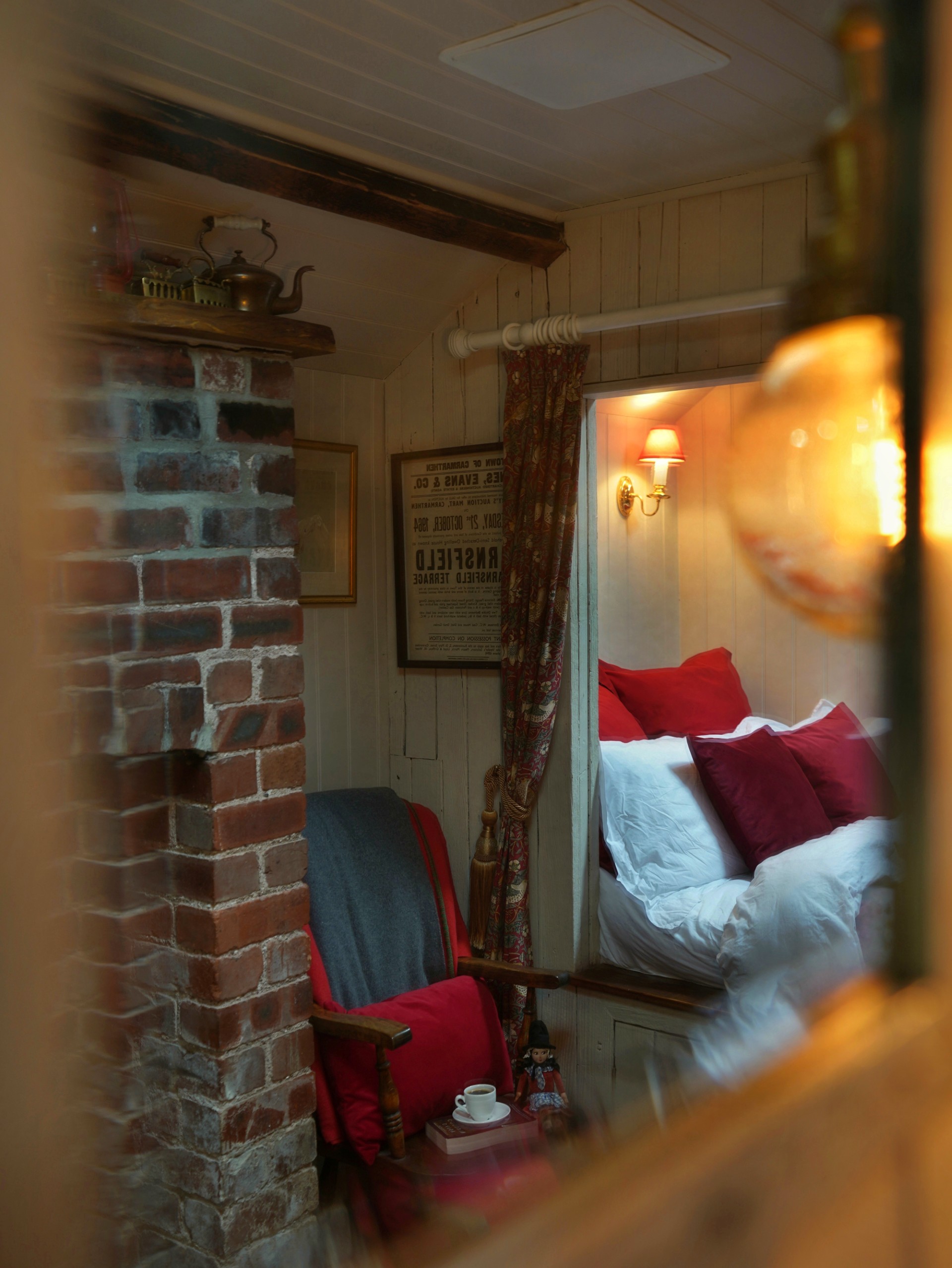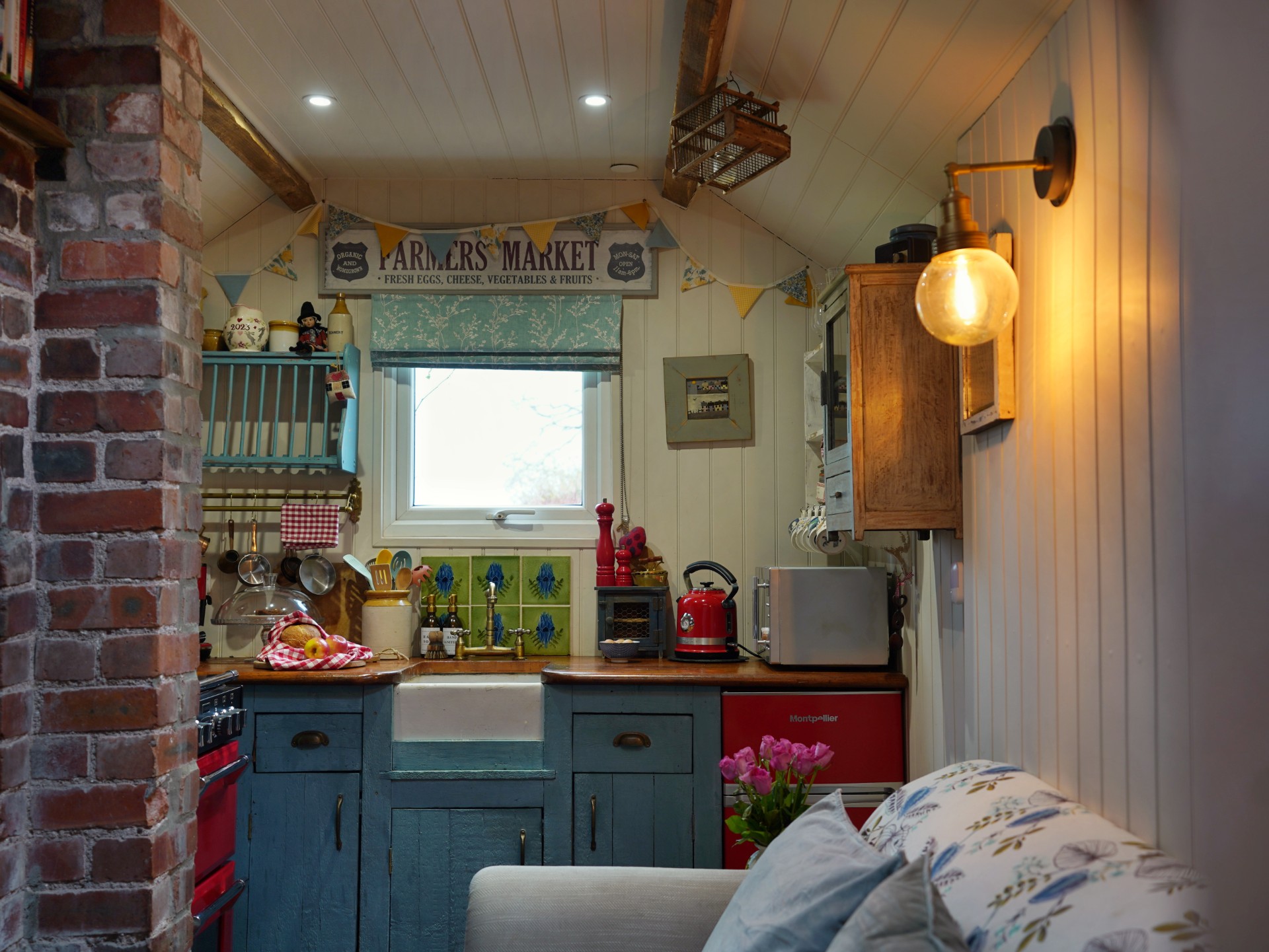Y tu mewn, mae’r lle’n uno gweadau gwledig â manylion wedi’u crefftio â llaw – trawstiau noeth, lloriau Cymreig wedi’u hadfer a lle tân brics gyda thân coed clyd. Mae’r gegin wedi’i hadeiladu â llaw yn darparu popeth sydd ei angen ar gyfer arhosiad hunanarlwyo hamddenol, tra bod y gwely dwbl pwrpasol dan ffenestr nenfwd yn berffaith ar gyfer syllu ar y sêr gyda’r nos.